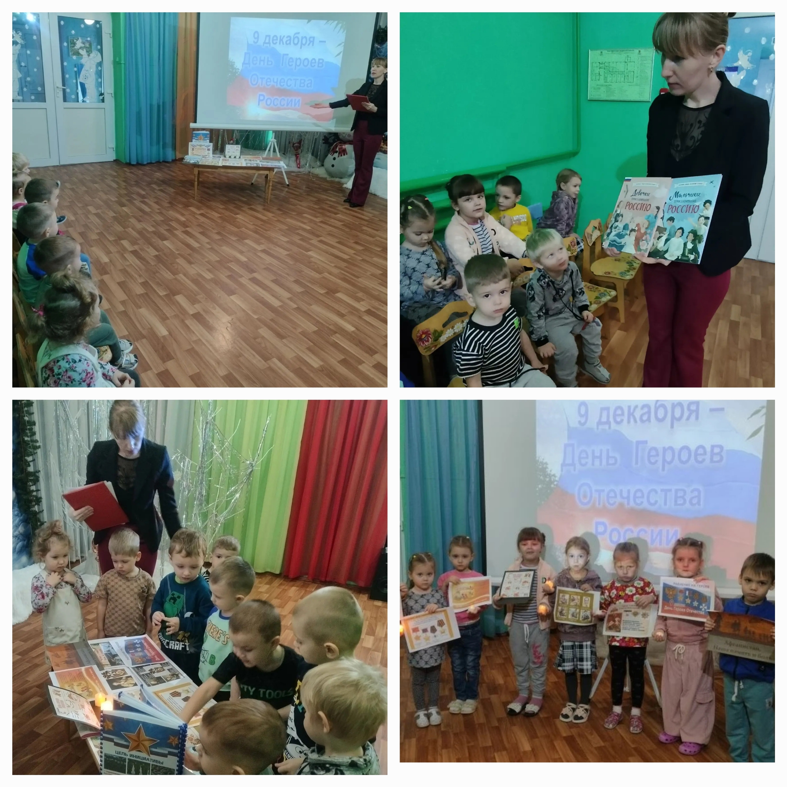 Сегодня в нашем детском саду прошла тематическая беседа, посвящённая Дню Героев Отечества. Возрождение традиции празднования этого памятного дня - это не только дань памяти героическим предкам, но и чествование ныне живущих героев, это надежда на формирование в обществе идеалов самоотверженного и бескорыстного служения Отечеству.