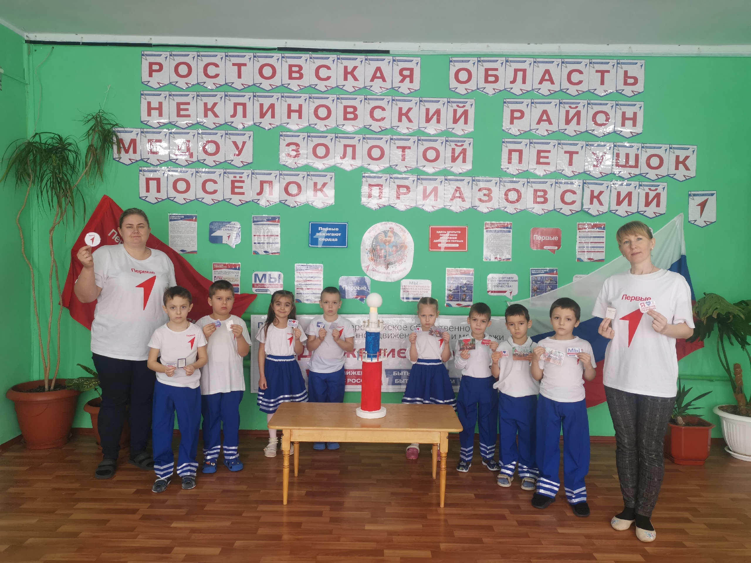 В детском саду «Золотой Петушок» пос. Приазовский команда Первых с энтузиазмом взялась за выполнение нового задания, решив создать уникальный «Маяк Первых».