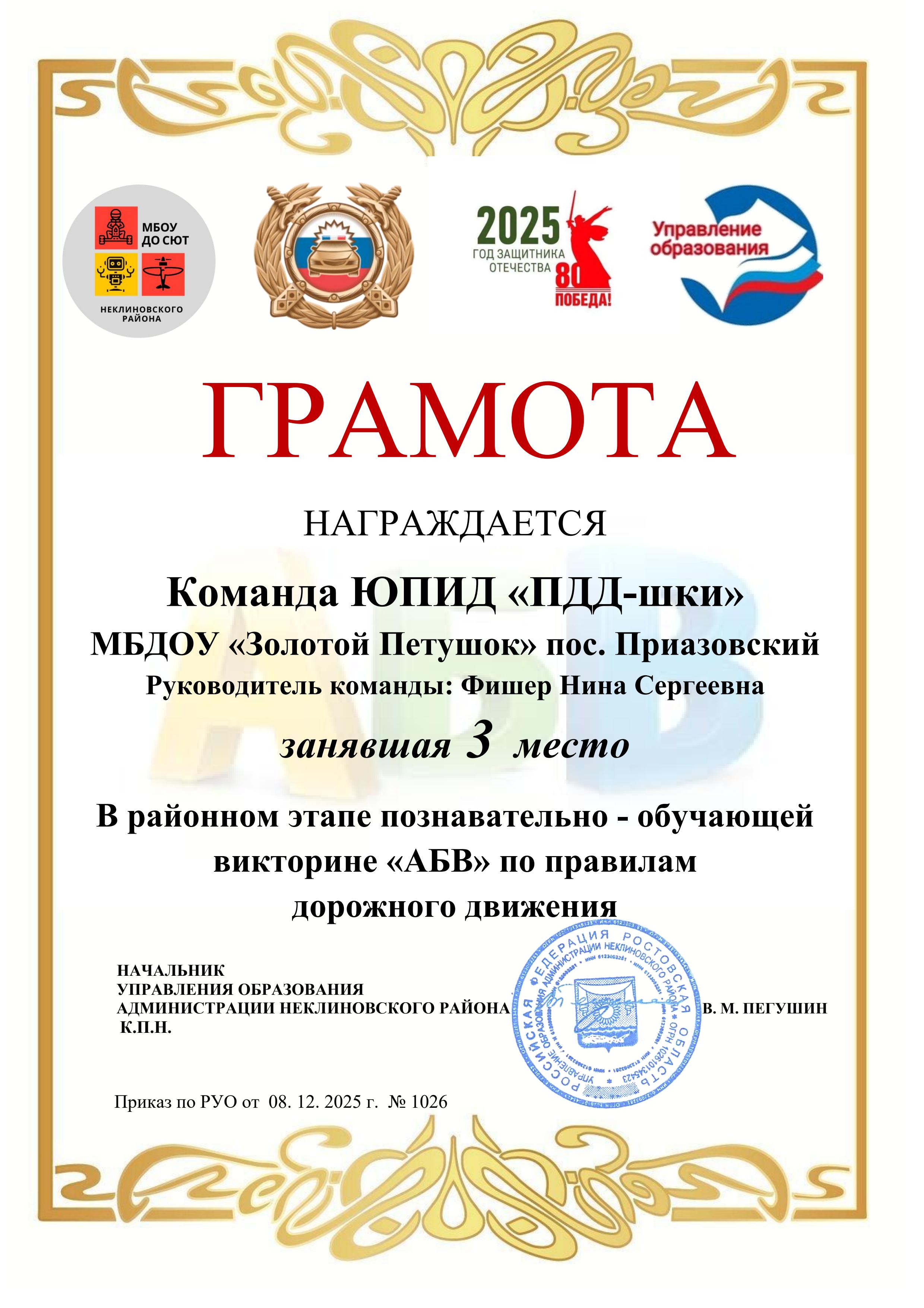 В викторине "АБВ" наша команда ПДДшки завоевала 3 место!
