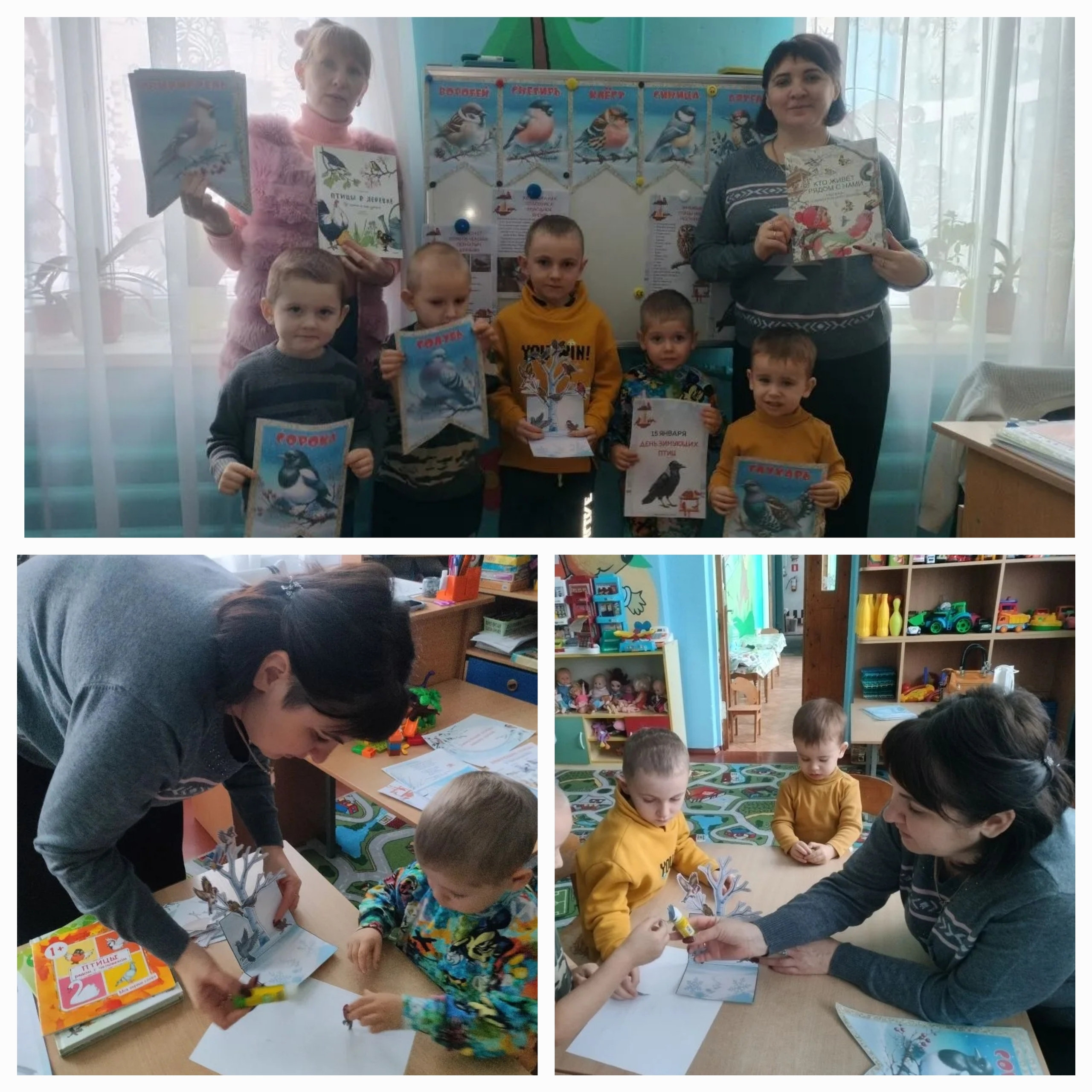 Совсем недавно в России отмечался День зимующих птиц. В рамках экологического праздника "День зимующих птиц» в нашем детском саду прошёл тематический день, посвящённый этому празднику. День зимующих птиц — это особый день в холодном январе, когда уделяется особое внимание этим удивительным пернатым героям, способным выживать в суровых зимних условиях. Вот и мы с ребятами побеседовали о зимующих птицах, рассмотрели иллюстрации, учились узнавать зимующих птиц по окраске и оперению. Дети с удовольствием играли в дидактические игры, прочитали интересные факты о птицах, сделали коллективную аппликацию "Птички на дереве".