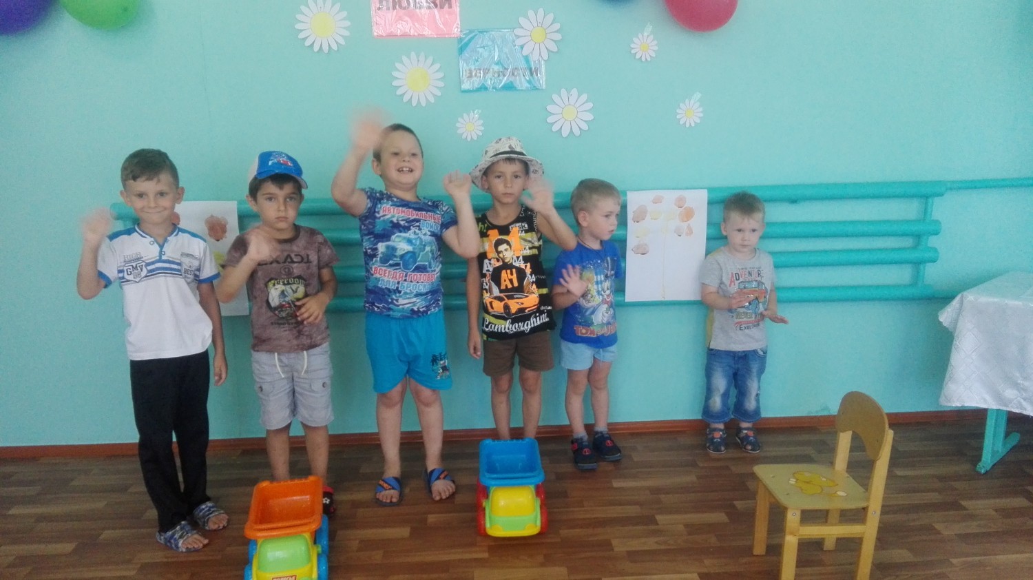 Будущие папы состязались в гонках на грузовиках.