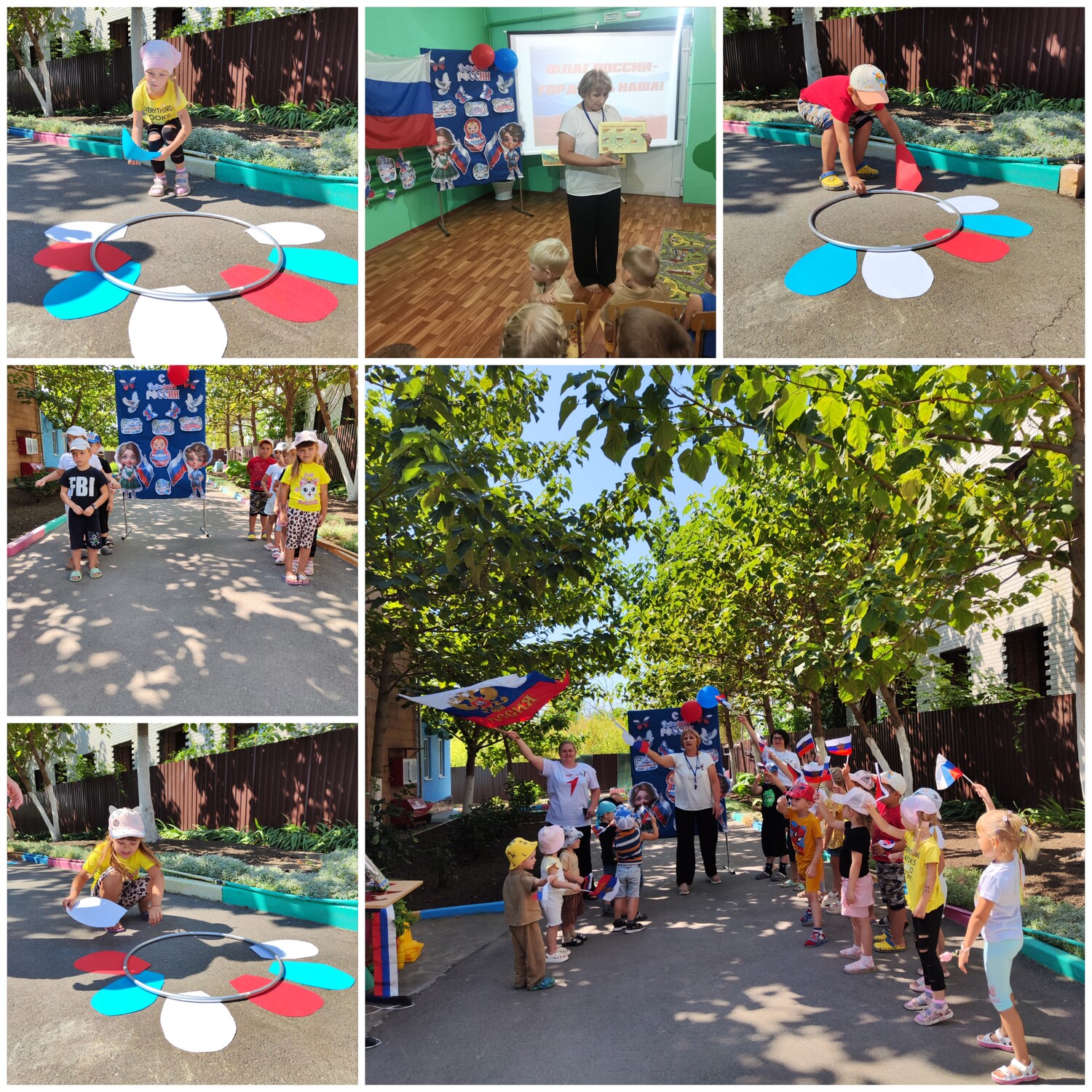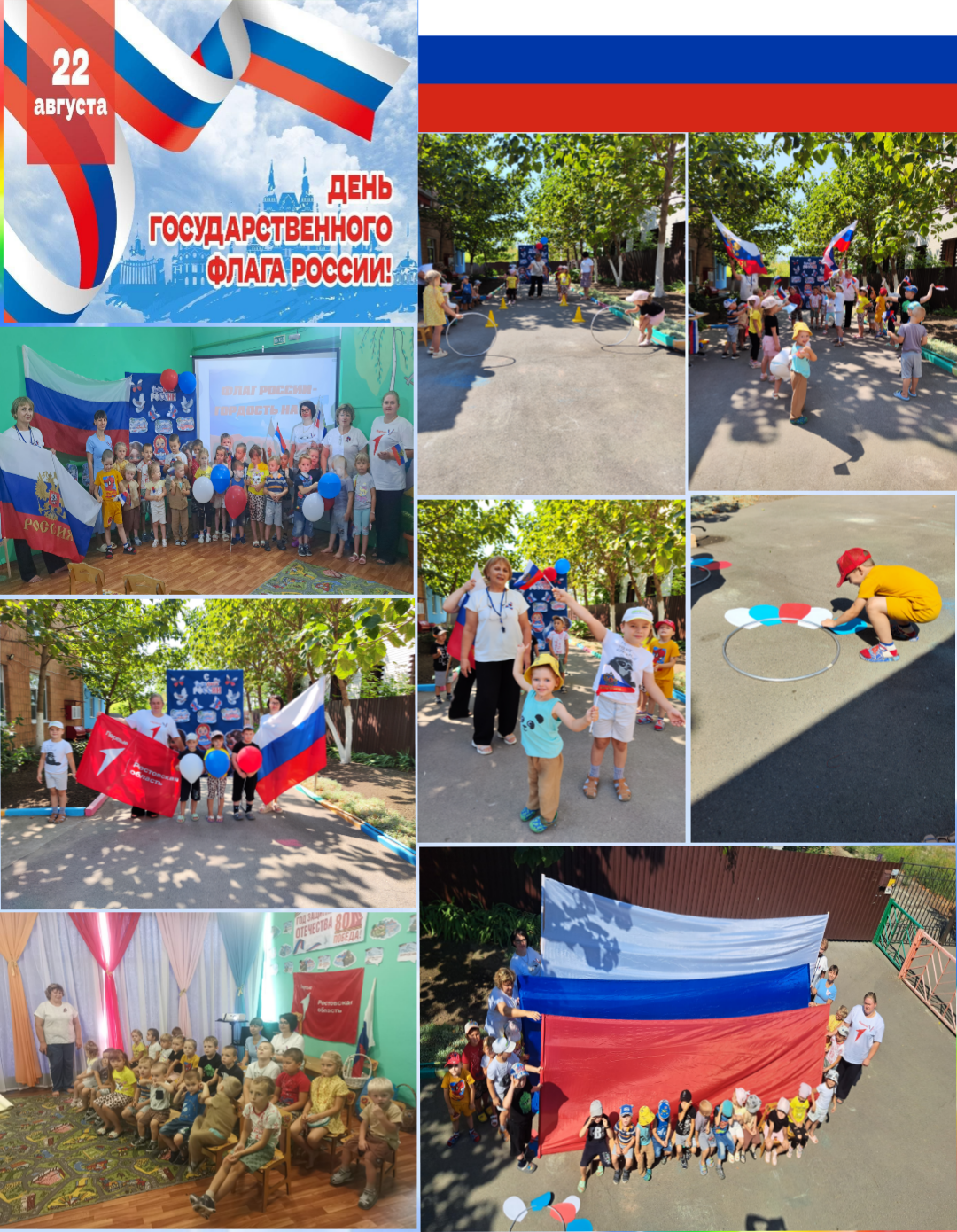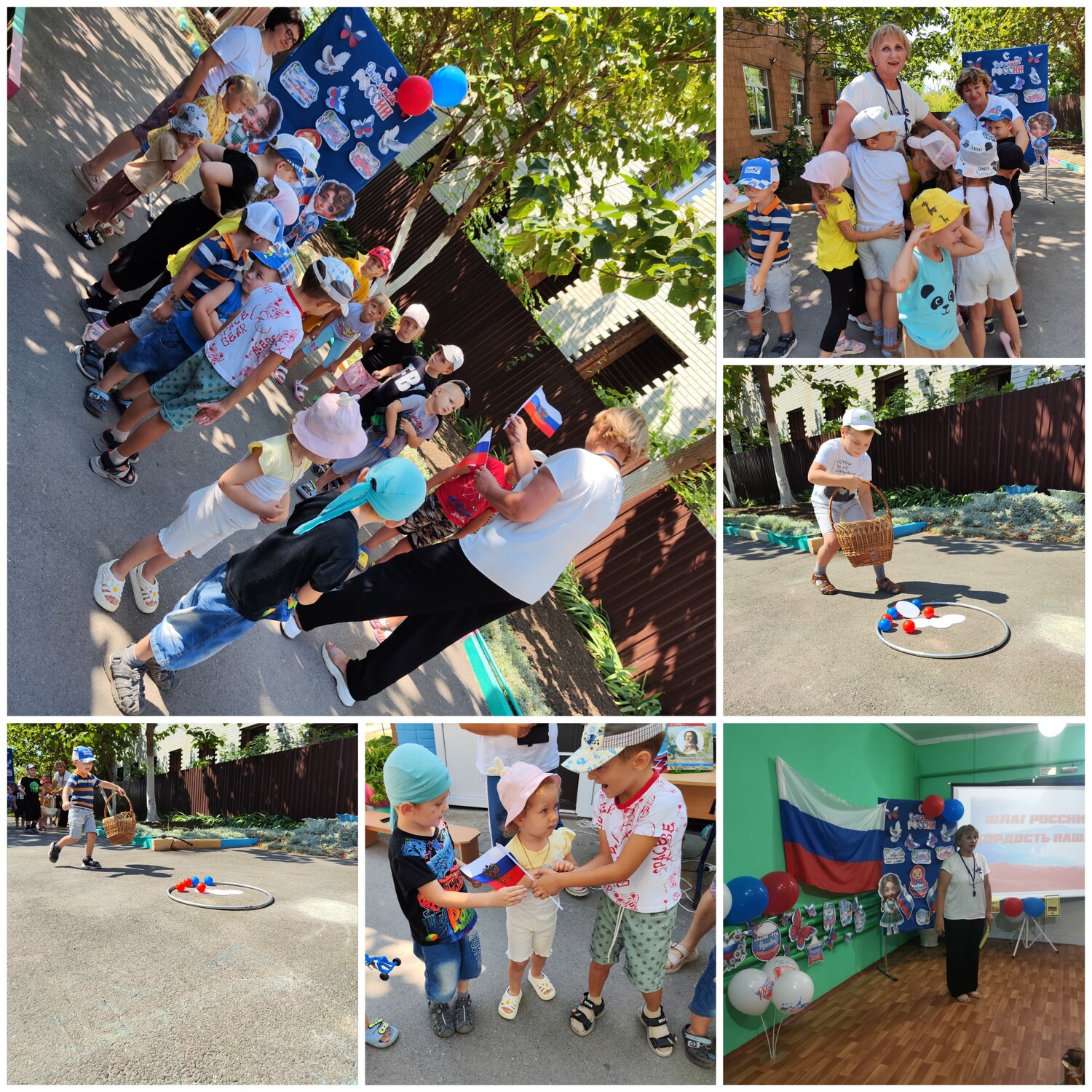Наш детский сад посетили работники Весело-Вознесенской библиотеки Самохвалова Н. И. и Волкова Л. И. с патриотической познавательной программой "Главный символ страны". Воспитанники посмотрели презентацию о истории создания флага нашей страны, поговорили о значении цветов триколора. Для детей провели праздничную игровую эстафету. В завершении воспитанники приняли участие в патриотическом флешмобе.